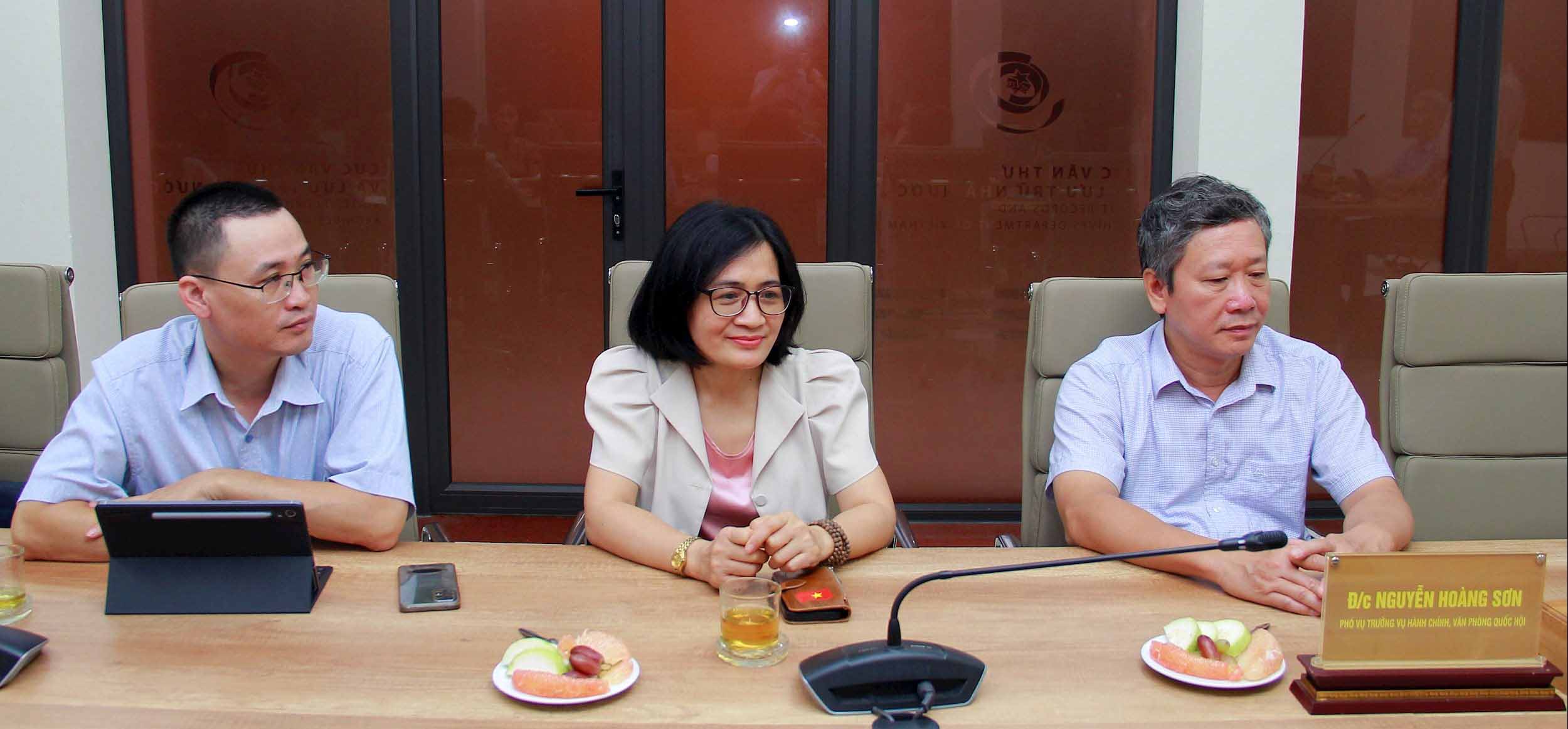 Tham dự buổi làm việc, về phía Văn phòng Quốc hội có Phó Chủ nhiệm Văn phòng Quốc hội Nguyễn Mạnh Hùng, Vụ trưởng Vụ Hành chính Đỗ Thị Thanh và các công chức chuyên môn có liên quan…