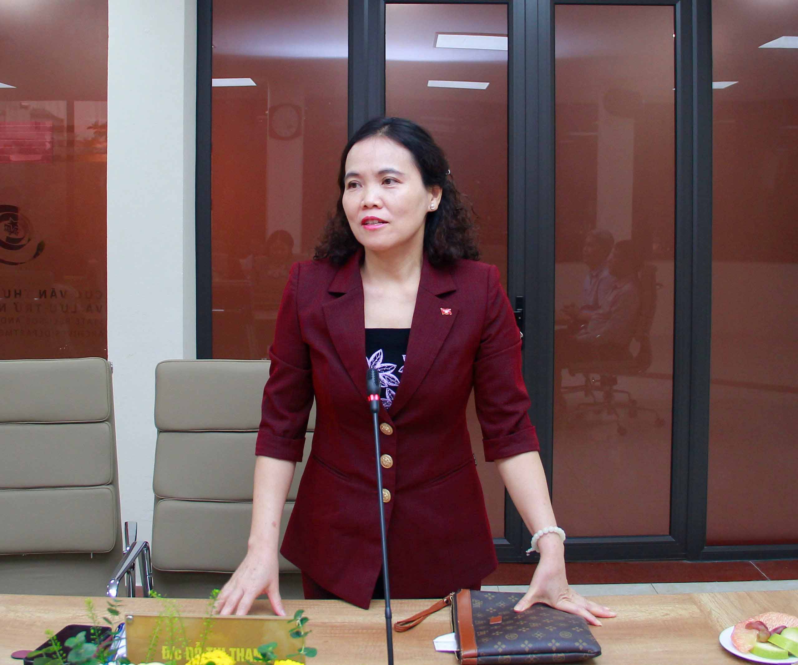 Trưởng phòng Quản lý dịch vụ và Phát huy giá trị tài liệu lưu trữ Mai Thị Thu Hiền phát biểu tại buổi làm việc.