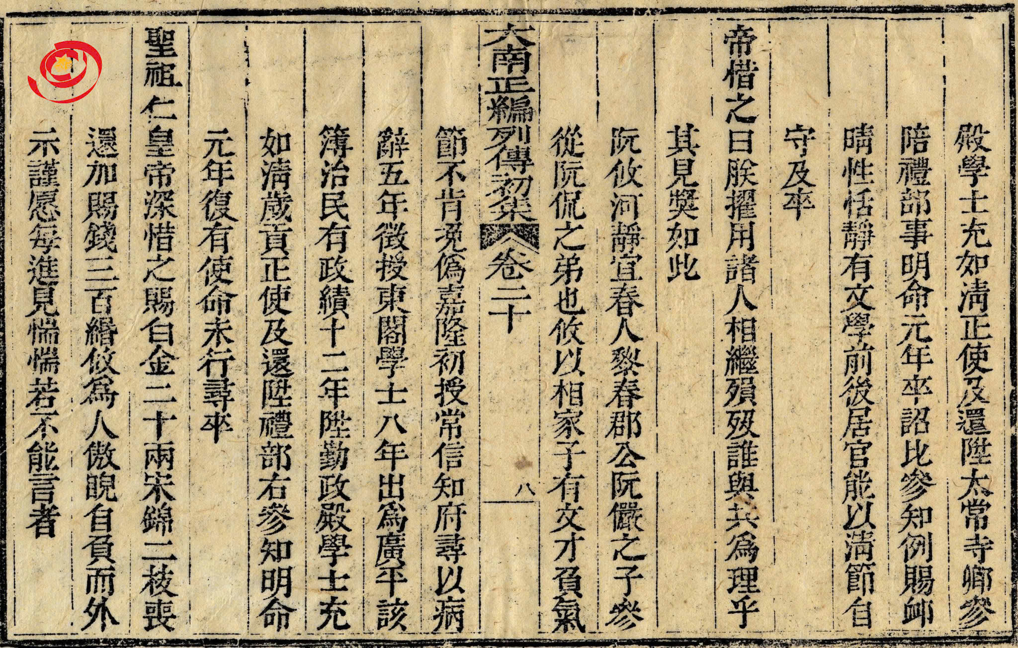 (Sách Đại Nam chính biên liệt truyện sơ tập, quyển 20, mặt khắc 8) (Nguồn: TTLTQGIV)