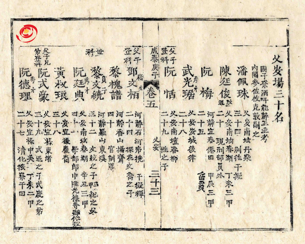 Mộc bản sách Quốc triều Hương khoa lục, quyển 5, mặt khắc 33 khắc tên Cụ Phan Bội Châu đỗ đầu khoa thi Hương (Cử nhân) năm Canh Tý, niên hiệu Thành Thái thứ 12 (1900). Nguồn: Trung tâm Lưu trữ quốc gia IV