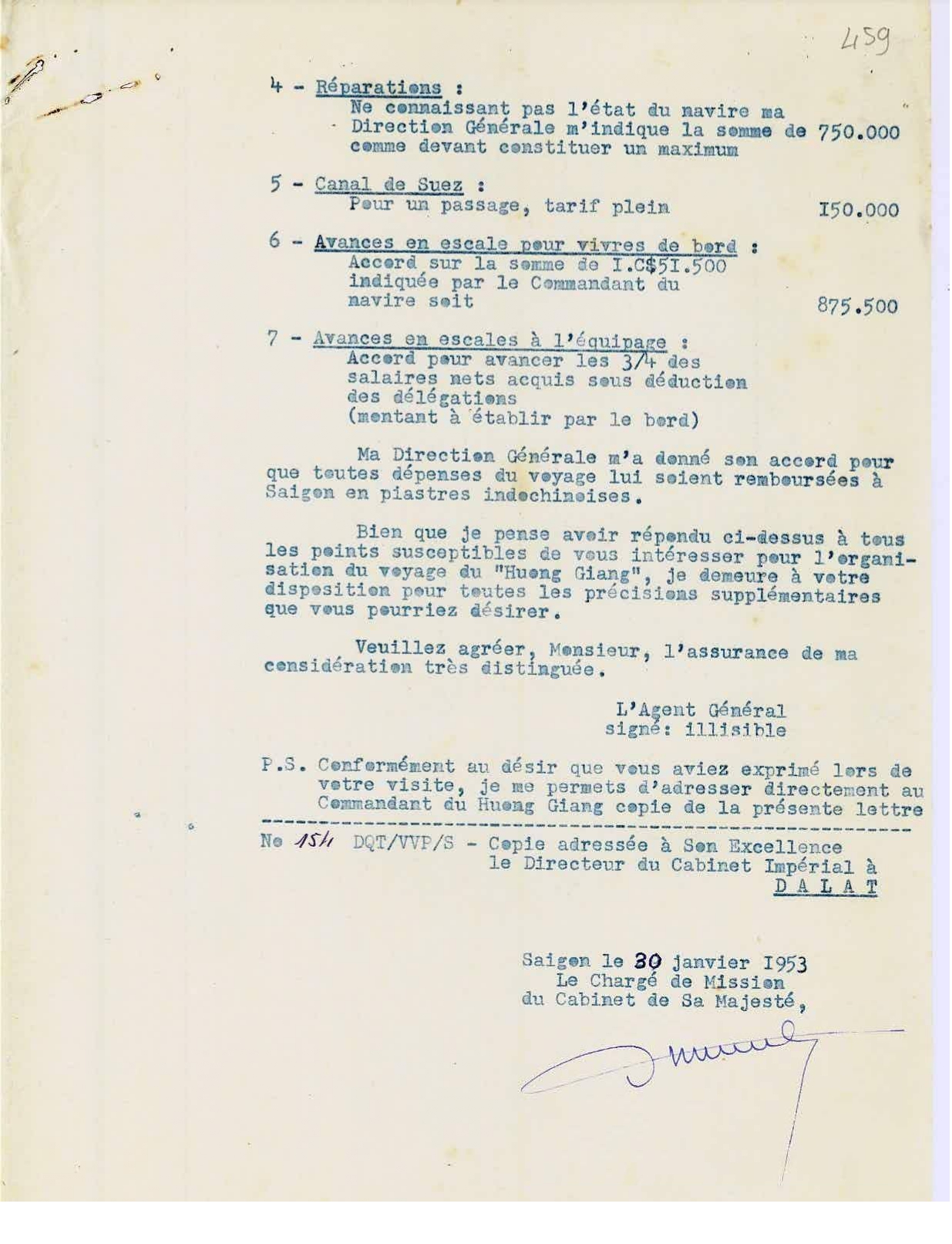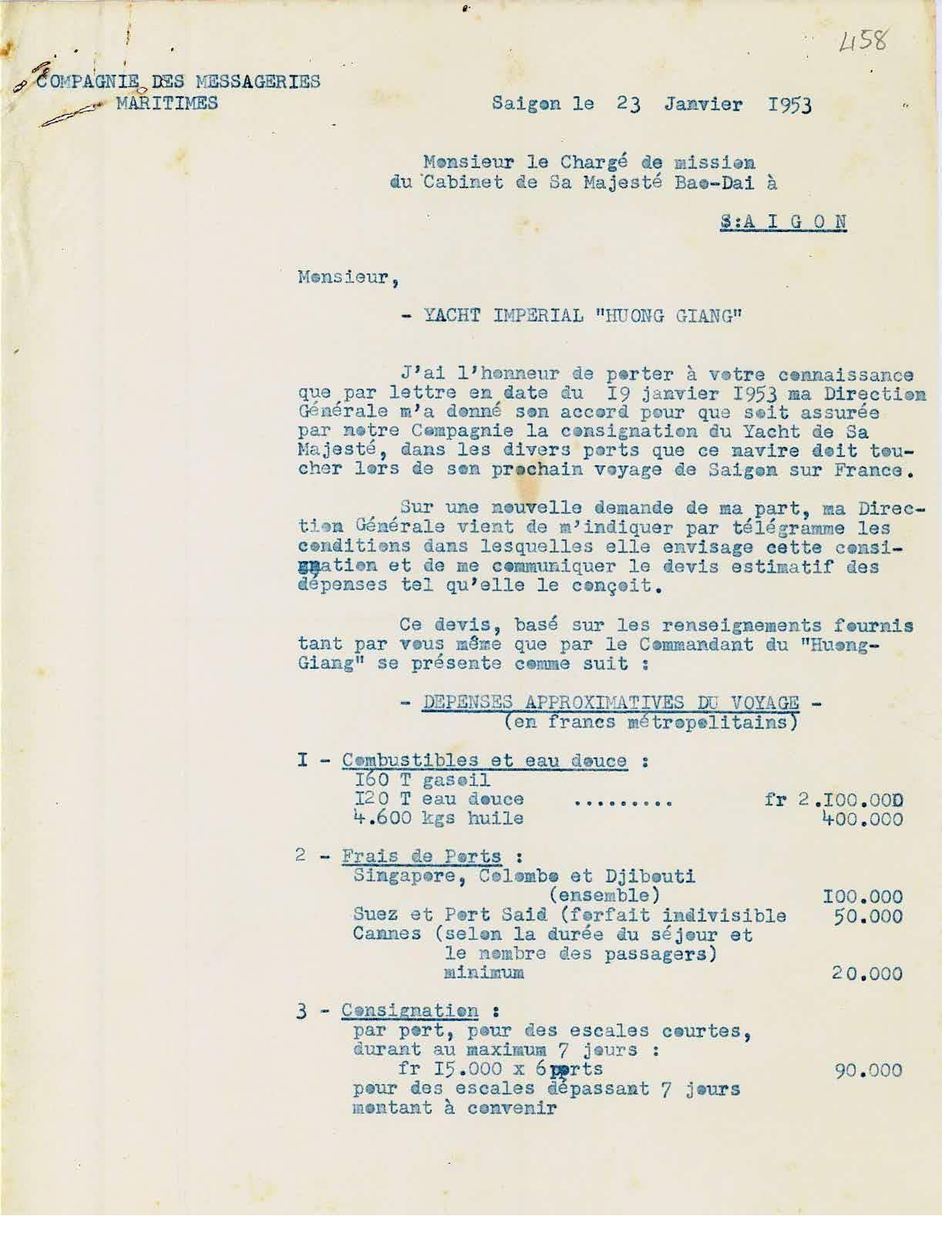 Bản dự trù kinh phí cho du thuyền Hương Giang đi Pháp