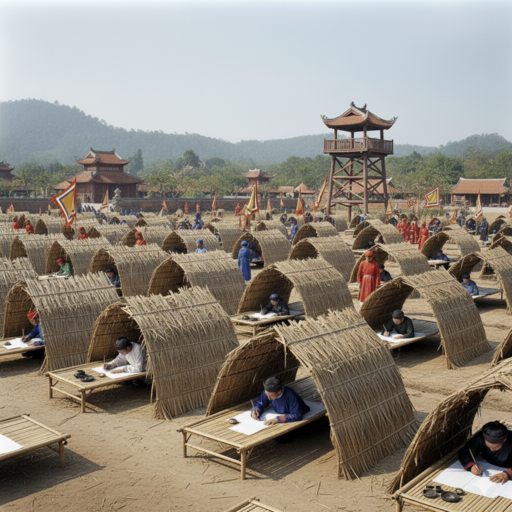 Hình ảnh mô phỏng 1 kỳ thi Hương dưới triều Nguyễn (Ảnh: AI)