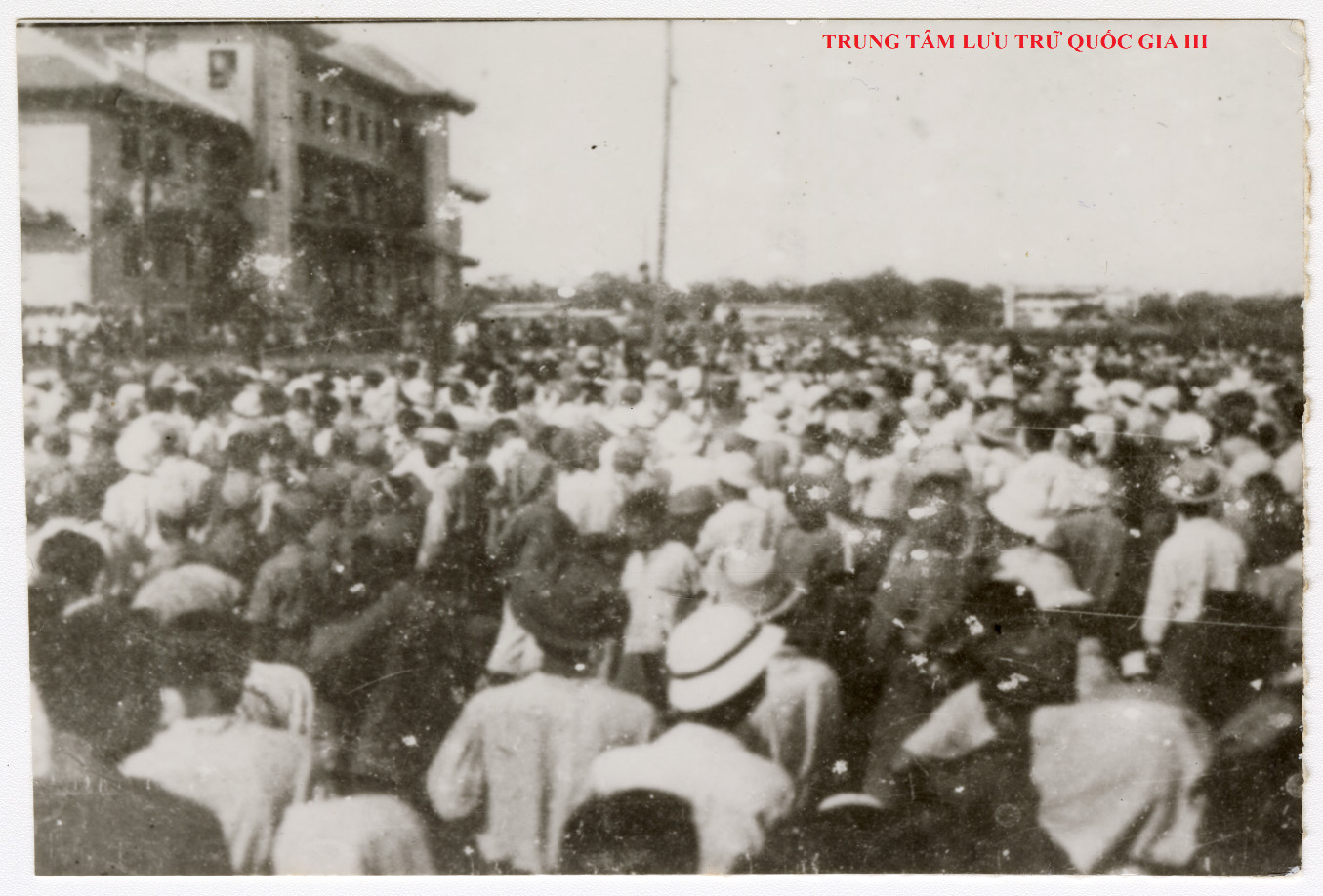 Nhân dân Thủ đô đến nghe Chủ tịch Hồ Chí Minh nói chuyện ở Việt Nam học xá (nay là Trường Đại học Bách khoa Hà Nội) ngày 5/1/1946. Nguồn: Trung tâm Lưu trữ quốc gia III, mục lục ảnh Nguyễn Bá Khoản, SLT197.