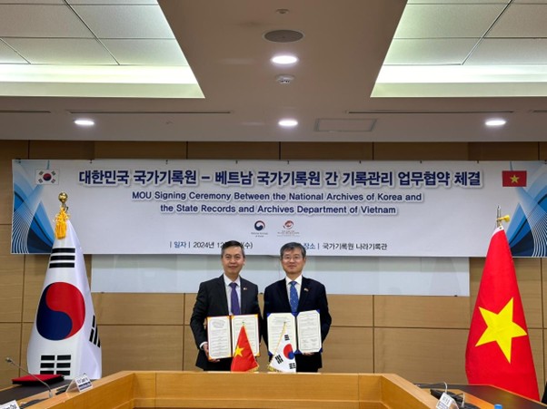 Bổ sung vào bức tranh này, hợp tác với Hàn Quốc nổi lên như một mô hình tiêu biểu về đào tạo và phát triển nguồn nhân lực, gắn hỗ trợ kỹ thuật với nâng cao năng lực quản lý tài liệu và bảo quản di sản tư liệu. Kể từ khi ký kết Thỏa thuận hợp tác năm 2007, ký lại vào năm 2024, hai bên đã duy trì cơ chế trao đổi thường xuyên, đặc biệt chú trọng đến đào tạo và phát triển nguồn nhân lực trong lĩnh vực lưu trữ số. Thông qua các chương trình hợp tác kỹ thuật và hỗ trợ của Chính phủ Hàn Quốc, nhiều lượt cán bộ lưu trữ Việt Nam đã được đào tạo về quản lý tài liệu, số hóa và bảo quản di sản tư liệu. Hợp tác này đã góp phần quan trọng vào quá trình hiện đại hóa ngành lưu trữ Việt Nam, nhất là trong bối cảnh chuyển đổi số.