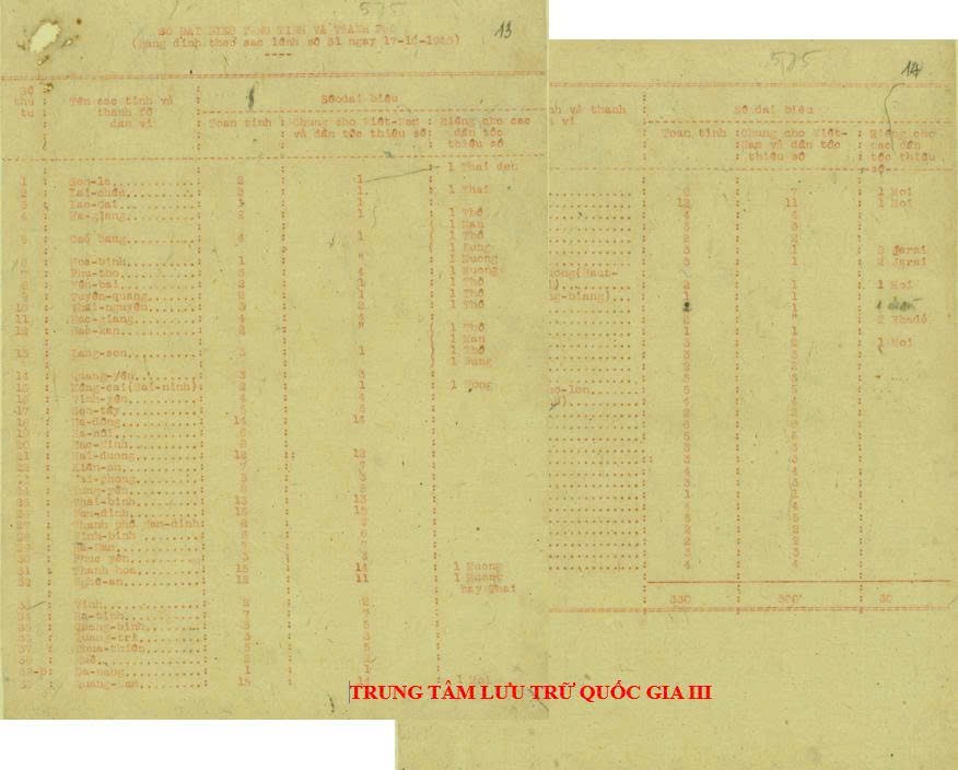 Bảng số đại biểu theo tỉnh, thành phố ấn định theo Sắc lệnh. Nguồn: Trung tâm Lưu trữ quốc gia III, phông Phủ Thủ tướng, hồ sơ số 585, tờ 13,14.Tại chương 7, Sắc lệnh quy định mỗi cử tri phải trực tiếp đi bầu, không được ủy quyền, cũng không được bầu bằng cách gửi thư. Cử tri sẽ bầu bằng phiếu kín.