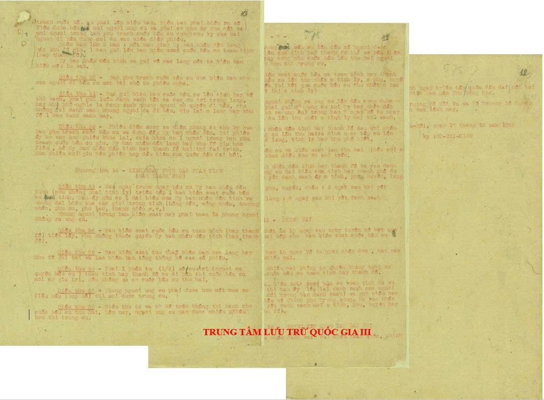 Những quy định cụ thể về tổ chức bầu cử và kiểm phiếu cuộc bầu toàn tỉnh. Nguồn: Trung tâm Lưu trữ quốc gia III, phông Phủ Thủ tướng, hồ sơ số 585, tờ 10,11,12.
